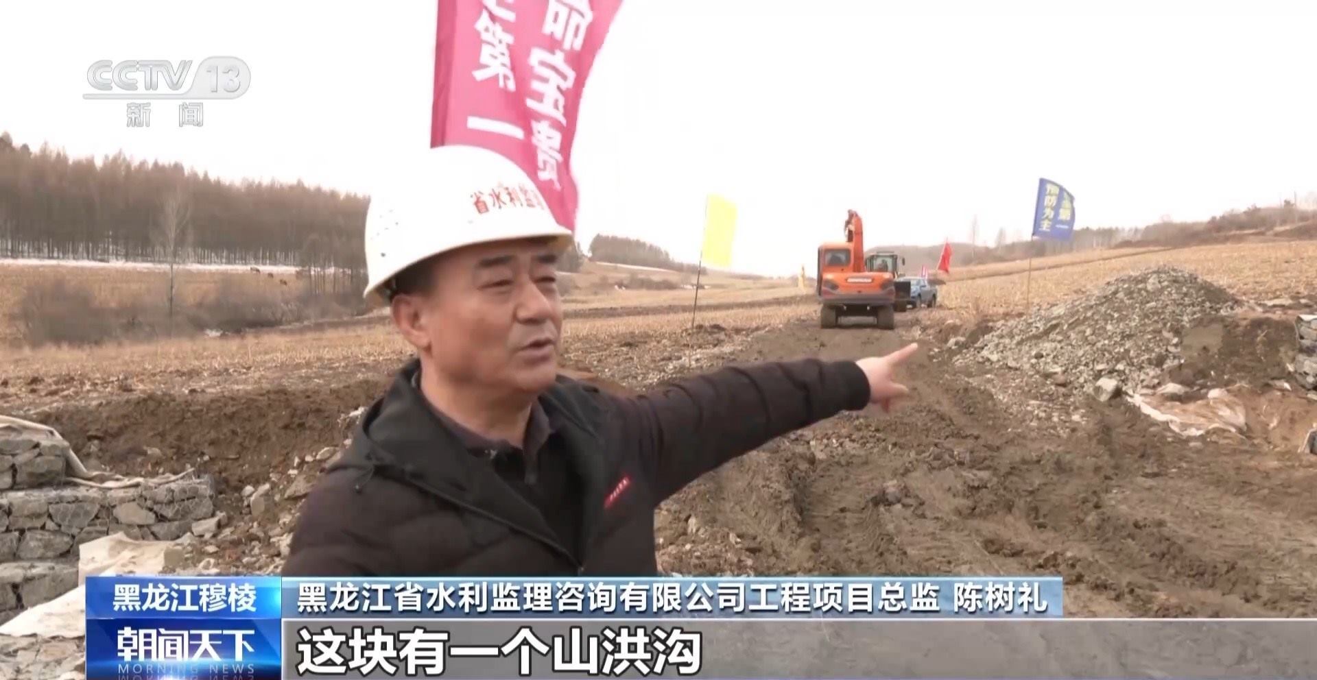 黑龍江省水利監(jiān)理咨詢(xún)有限公司工程項(xiàng)目總監(jiān) 陳樹(shù)禮:這塊有一個(gè)山洪溝,水土流失非常嚴(yán)重,通過(guò)項(xiàng)目把這個(gè)(地方)用石籠進(jìn)行護(hù)砌,保證土地面積不受沖刷。
