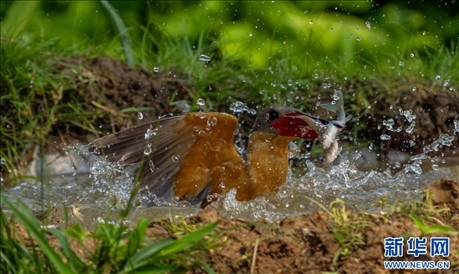 近日,在云南省德宏傣族景頗族自治州盈江縣那邦鎮(zhèn),攝影師拍攝到國(guó)家二級(jí)重點(diǎn)保護(hù)野生動(dòng)物鸛嘴翡翠捕食的精彩畫面和兩只鸛嘴翡翠同框的罕見畫面。據(jù)了解,那邦鎮(zhèn)是中國(guó)觀鳥圣地之一,有許多珍貴的鳥類在此被攝影師記錄過(guò)。(朱邊勇 尹以祜 張仁韜 沙永勝)