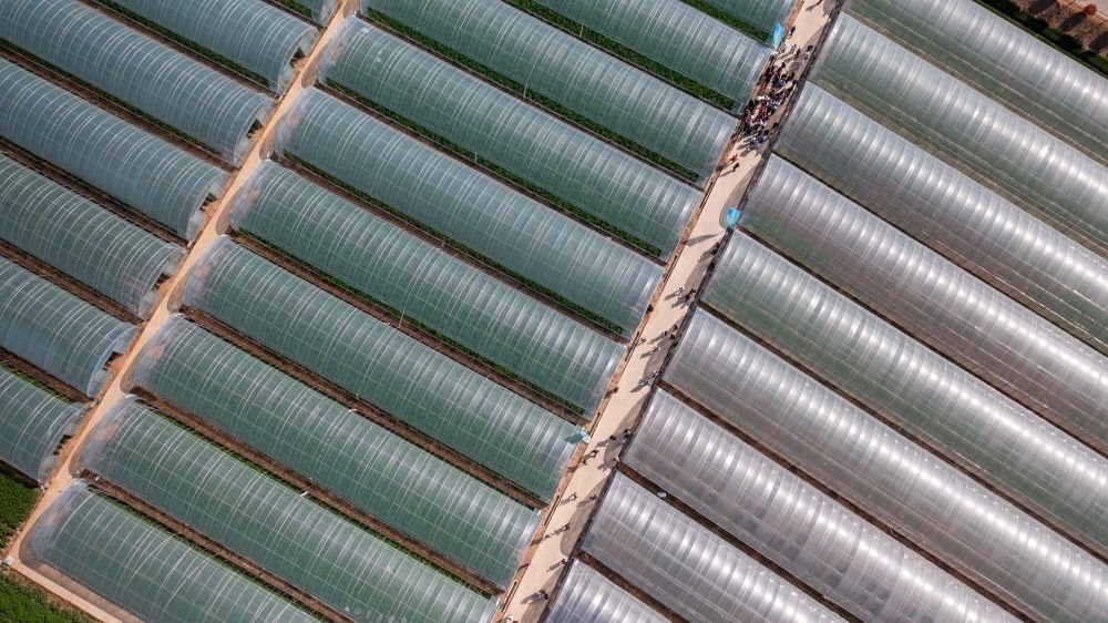 2024年4月18日拍攝的山東省滕州市界河鎮(zhèn)東李莊村馬鈴薯種植基地(無(wú)人機(jī)照片)。新華社發(fā) (宋海存 攝)