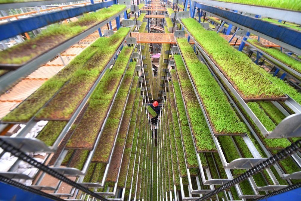 2024年3月21日,村民在湖南省衡山縣白果鎮(zhèn)國(guó)豐農(nóng)機(jī)服務(wù)專業(yè)合作社育秧。新華社記者 趙眾志 攝