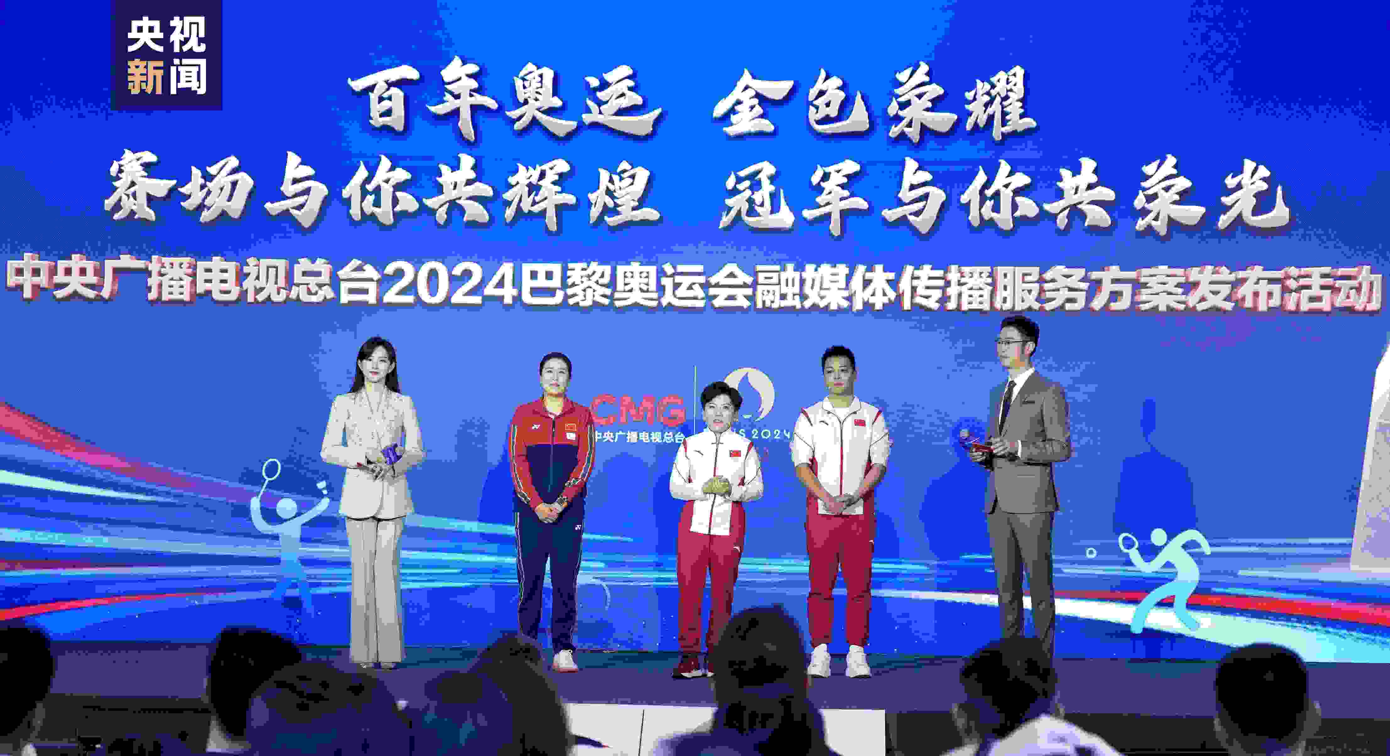 中央廣播電視總臺編務(wù)會議成員兼總經(jīng)理室總經(jīng)理彭健明出席活動(dòng),并與總臺財(cái)經(jīng)節(jié)目中心、體育青少節(jié)目中心、視聽新媒體中心、技術(shù)局、新聞新媒體中心、文藝節(jié)目中心、總經(jīng)理室相關(guān)負(fù)責(zé)人,奧運(yùn)冠軍鄧亞萍、高崚、何沖,東鵬飲料(集團(tuán))股份有限公司、寶潔(中國)有限公司、安利(中國)日用品有限公司、上海百雀羚日用化學(xué)有限公司、小紅書科技有限公司、安踏(中國)有限公司相關(guān)負(fù)責(zé)人等,共同啟動(dòng)總臺2024巴黎奧運(yùn)會體育營銷。