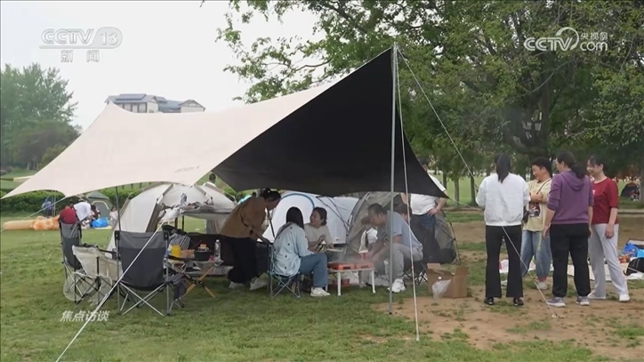 余澤建是福建人,在湖北工作。4月14日這天,他和親戚、朋友開了一個(gè)半小時(shí)的車來(lái)到武漢市黃陂木蘭景區(qū)露營(yíng)。余澤建的露營(yíng)裝備越買越專業(yè)、越買越多,從一頂帳篷,到配備燒烤架、戶外桌椅、天幕等。