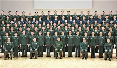 在熱烈的掌聲中,習近平親切接見陸軍軍醫(yī)大學官兵代表,并同大家合影留念。