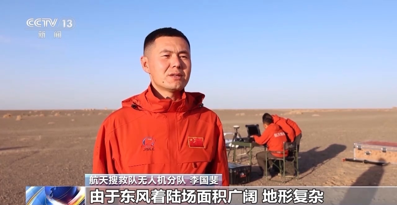 航天搜救隊(duì)無(wú)人機(jī)分隊(duì) 李國(guó)斐:由于東風(fēng)著陸場(chǎng)面積廣闊,地形復(fù)雜,單靠人力無(wú)法實(shí)現(xiàn)掌握整個(gè)著陸場(chǎng)的動(dòng)態(tài)情況,使用無(wú)人機(jī)就能彌補(bǔ)我們看不到的盲區(qū),通過(guò)搭載的不同載荷,比如高清攝像頭和熱成像設(shè)備,來(lái)滿足不同的搜救需求,大大提高了搜救的靈活性和多樣性。