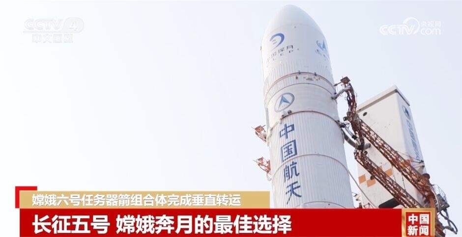 嫦娥六號(hào)任務(wù)器箭組合體完成垂直轉(zhuǎn)運(yùn)