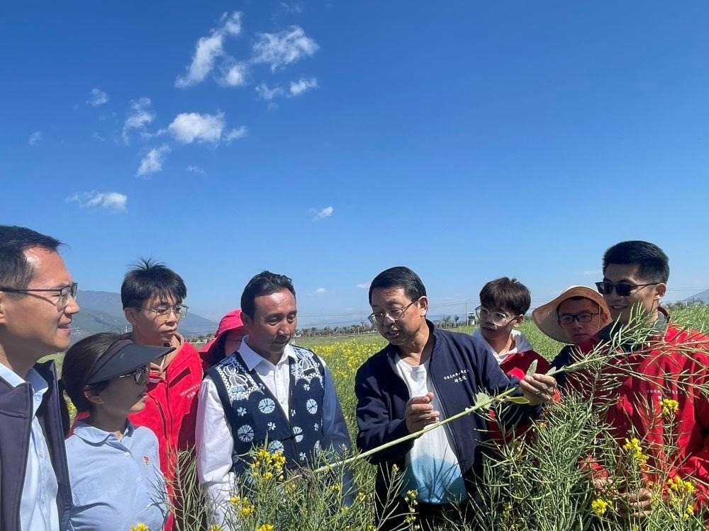 中國農(nóng)業(yè)大學教授張福鎖(右四)帶領科技小院師生與農(nóng)戶交流種植心得。