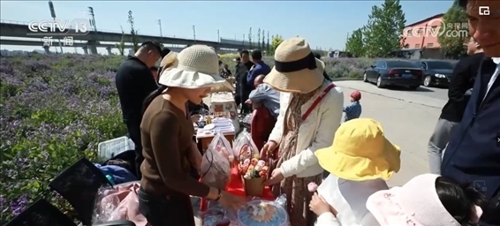 一年前,這里還是一片工地遺留的建筑渣土。當(dāng)?shù)嘏c科研團(tuán)隊(duì)合作,引進(jìn)營養(yǎng)土技術(shù),一年內(nèi)就將撂荒地變成了“桃花源”?;ê_呥€擺起了創(chuàng)意市集,結(jié)合“花”元素的花餑餑、非遺農(nóng)民畫和黑陶工藝品,吸引了不少游客消費(fèi)。