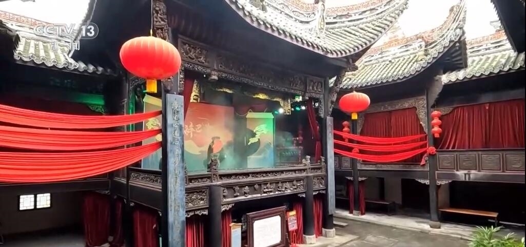 古戲臺見證了川渝人對于戲曲的熱情。如今,10多個平均年齡不到30歲的年輕人每天都會在這里演出?!?0后”的蔡文燦就是川劇變臉的表演者,他已經(jīng)在這里演了五年。