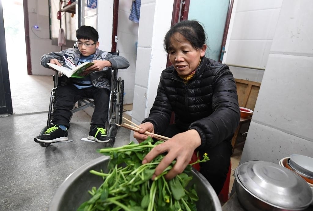 母子倆日常生活開(kāi)支幾乎都?jí)涸邳S乜鮮一個(gè)人身上。她家里種有三畝田,只有節(jié)假日才能回去打理。平時(shí),她在照顧兒子之余,在學(xué)校撿拾廢舊物品賣錢補(bǔ)貼生活費(fèi)。“再苦再累也要咬牙堅(jiān)持下去?!秉S乜鮮說(shuō)。