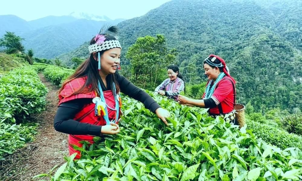 沿著蜿蜒的盤山公路,來到達(dá)木珞巴民族鄉(xiāng)卡布村革林茶場(chǎng),還未走近,便能聞到山中飄來的清新茶香和泥土芬芳,令人神清氣爽。