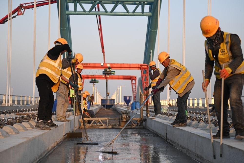 2024年3月20日,中鐵三局建設(shè)者在滬蘇湖鐵路東苕溪特大橋上施工。滬蘇湖鐵路起自上海虹橋站,途經(jīng)江蘇省蘇州市,終至浙江省湖州市湖州站。項目建成運營后,將進(jìn)一步完善區(qū)域路網(wǎng)布局,促進(jìn)沿線經(jīng)濟(jì)社會發(fā)展和長三角一體化高質(zhì)量發(fā)展。新華社記者 黃宗治 攝