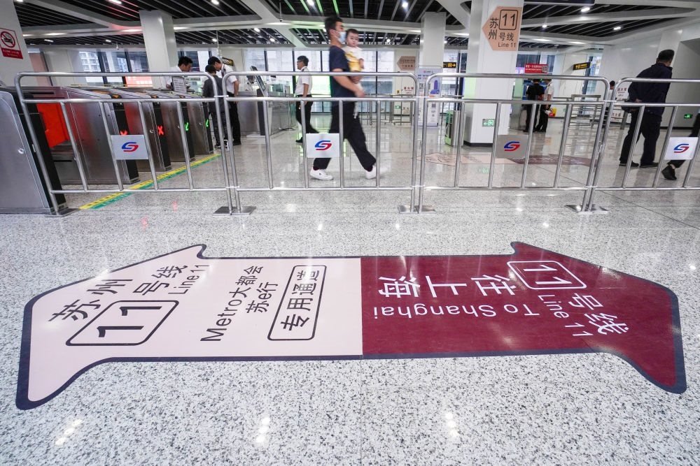 2023年6月24日,乘客在蘇州軌道交通11號線花橋站進(jìn)站乘車。當(dāng)日,蘇州軌道交通11號線正式投入運營,并與上海軌道交通11號線實現(xiàn)無縫換乘,長三角核心城市間首次實現(xiàn)地鐵系統(tǒng)跨省互聯(lián)互通。新華社記者 李博 攝