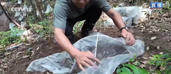 將菌棒種下后,還需要將靈芝保護(hù)起來(lái)。漫山遍野立著的一個(gè)個(gè)拱形小棚子就是靈芝的“保護(hù)罩”,在覆土種植后,工人們會(huì)搭建起小拱棚,將菌棒口包裹在內(nèi),可以有效防澇、防旱、防蟲(chóng),還能提高棚內(nèi)的二氧化碳濃度,讓生長(zhǎng)出來(lái)的靈芝品質(zhì)更高。菌棒種下后,到7月就可以對(duì)第一撥靈芝進(jìn)行采收,到10月第二撥靈芝就已經(jīng)長(zhǎng)成。在森林中種出的紫靈芝質(zhì)地堅(jiān)硬、形態(tài)飽滿。