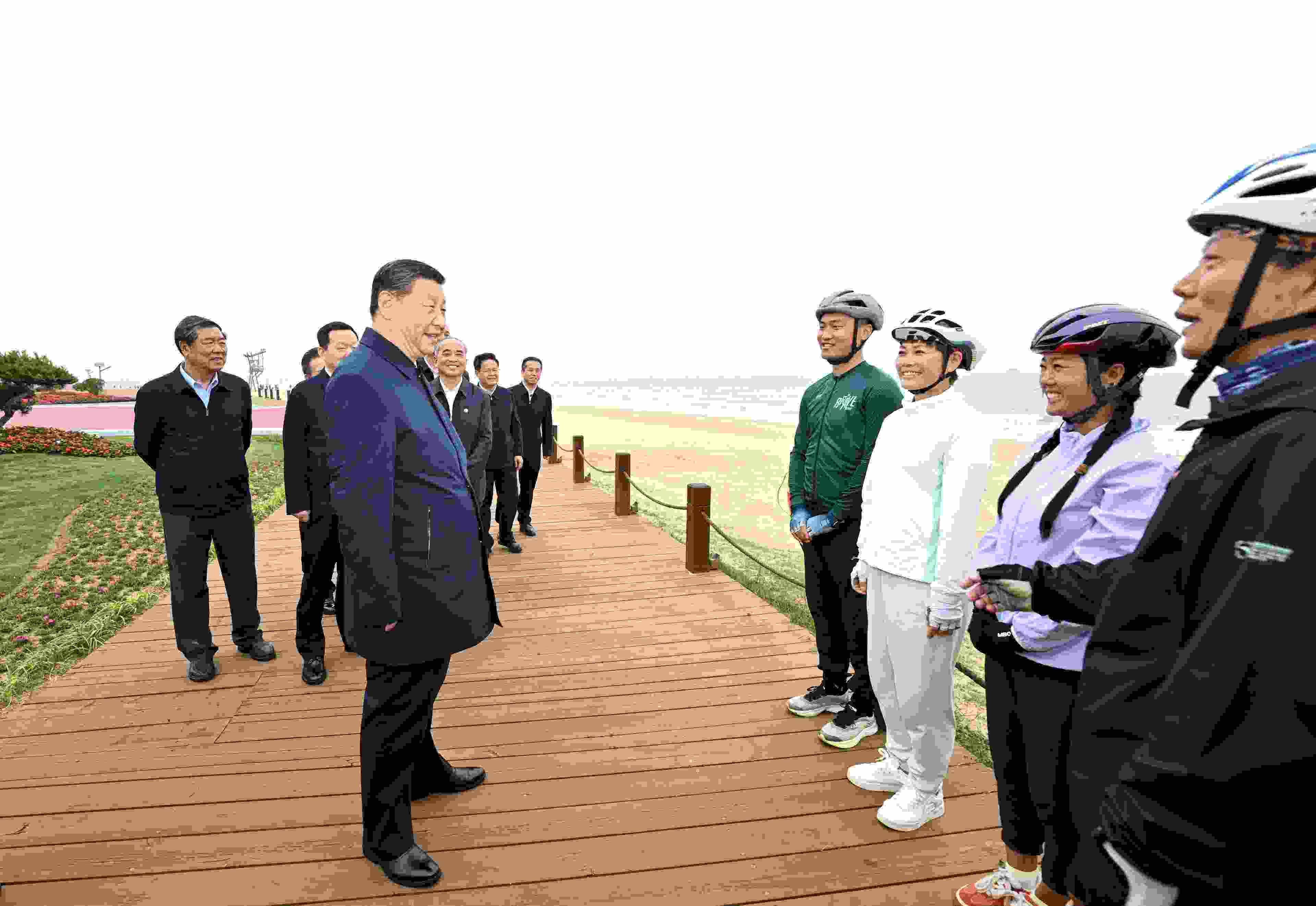 海風(fēng)輕拂,碧海藍(lán)天間,一條綠道蜿蜒向前。5月22日下午,習(xí)近平總書記來到山東日照陽光海岸綠道,了解當(dāng)?shù)丶訌?qiáng)海岸線生態(tài)保護(hù)修復(fù)、提高人民生活品質(zhì)等情況。