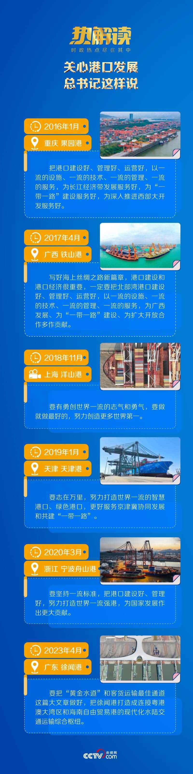 總書記曾深刻指出:“經(jīng)濟強國必定是海洋強國、航運強國。”他希望我國港口建設“要志在萬里”,“為國家發(fā)展作出更大貢獻”。