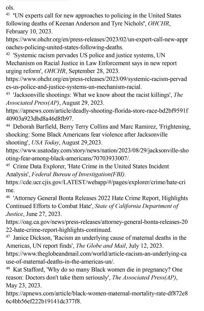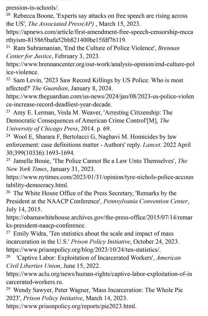 非洲裔在執(zhí)法領(lǐng)域面臨嚴(yán)重種族歧視。2023年1月3日,洛杉磯31歲的非洲裔男子基南·安德森涉嫌交通肇事,警方在制服他的過程中使用電擊槍擊中其6次,致其心臟病發(fā),送醫(yī)不治身亡。(注39)2023年1月7日,田納西州孟菲斯市的警察以“魯莽駕駛”為由將29歲的非洲裔男子泰爾·尼科爾斯攔下,并對其進(jìn)行長達(dá)數(shù)分鐘的殘忍毆打。三天后尼科爾斯因傷勢過重去世,而事后的調(diào)查無法證實(shí)警察關(guān)于其“魯莽駕駛”的說法。(注40)這兩起非洲裔遭受警察暴力執(zhí)法身亡案例引發(fā)多名聯(lián)合國專家的高度關(guān)注。專家們強(qiáng)調(diào),在兩起事件中,警察使用的武力違反保護(hù)生命權(quán),禁止酷刑和其他殘忍、不人道或有辱人格待遇或處罰的國際準(zhǔn)則,也不符合聯(lián)合國《執(zhí)法人員行為守則》和《執(zhí)法人員使用武力和火器的基本原則》。(注41)聯(lián)合國人權(quán)理事會(huì)在執(zhí)法工作中推進(jìn)種族正義和平等的國際獨(dú)立專家機(jī)制在對美國實(shí)地訪問后發(fā)布報(bào)告指出,針對非洲裔的系統(tǒng)性種族主義已經(jīng)滲透到美國警察隊(duì)伍和刑事司法系統(tǒng)。非洲裔被警察殺害的可能性是白人的3倍,被監(jiān)禁的可能性是白人的4.5倍。在每年1000多起警察殺人案件中,只有1%的涉事警察被指控。報(bào)告警告說,美國如果不按照國際標(biāo)準(zhǔn)改革警察使用武力的規(guī)則,許多殺戮將繼續(xù)發(fā)生。(注42)