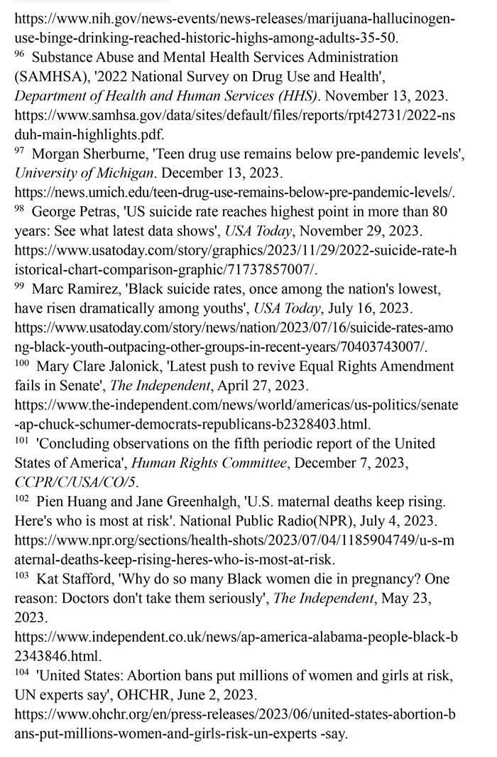 美國婦女兒童權(quán)利長期遭受系統(tǒng)性侵犯,保障性別平等的憲法規(guī)定付之闕如,至今未批準(zhǔn)聯(lián)合國《消除對婦女一切形式歧視公約》,而且是聯(lián)合國會(huì)員國中唯一沒有批準(zhǔn)《兒童權(quán)利公約》的國家。美國參議院2023年4月否決了保障性別平等的憲法修正提案。美國每年約有5.4萬名婦女因遭受懷孕歧視而失業(yè)。超過220萬育齡婦女無法獲得產(chǎn)科護(hù)理。至少有21個(gè)州命令禁止或嚴(yán)格限制墮胎。孕產(chǎn)婦死亡人數(shù)近20年來增加了一倍多。職場、校園、家庭等多領(lǐng)域的性暴力層出不窮。兒童的生存權(quán)與發(fā)展權(quán)堪憂。大量兒童被排除出醫(yī)療補(bǔ)助計(jì)劃。槍支暴力成為兒童死亡的主要原因。毒品濫用在青少年群體中蔓延。46個(gè)州被發(fā)現(xiàn)瞞報(bào)約3.48萬例寄養(yǎng)兒童失蹤案件。