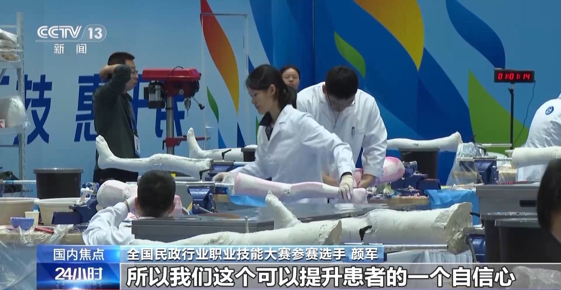 全國民政行業(yè)職業(yè)技能大賽參賽選手 畢珂磊:通過自己的雙手,讓殘疾人可以真正地站起來,看著他們能開心地走起來,我們從內(nèi)心感到非常高興。