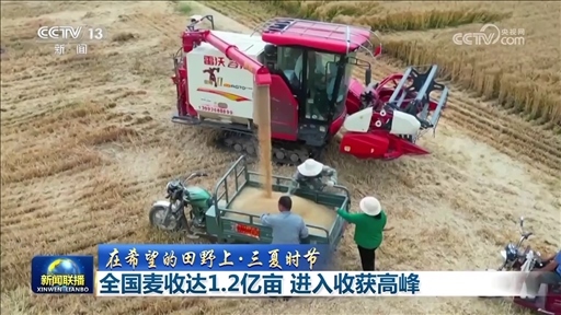 央視網(wǎng)消息(新聞聯(lián)播):農(nóng)業(yè)農(nóng)村部最新數(shù)據(jù)顯示,當(dāng)前全國(guó)麥?zhǔn)者_(dá)1.2億畝,進(jìn)度過(guò)三成半,已進(jìn)入收獲高峰。