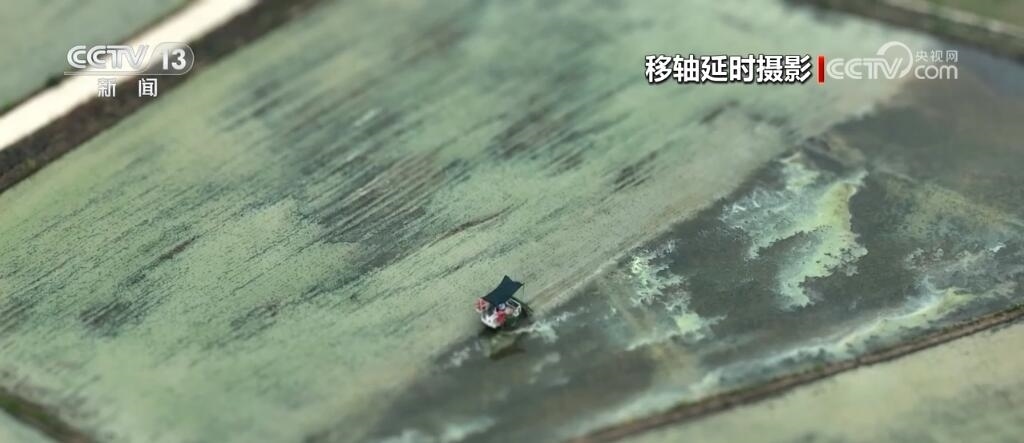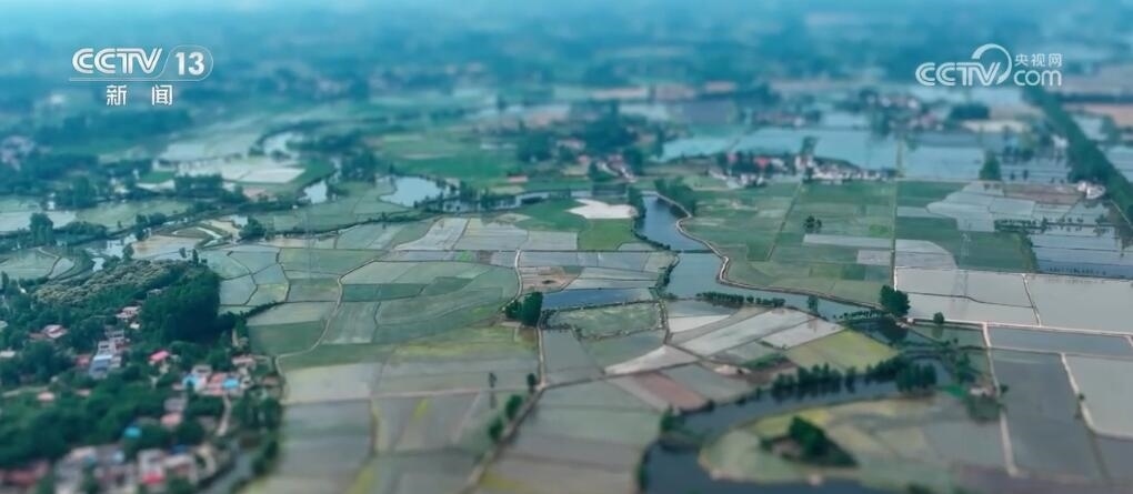 現(xiàn)在您看到的是河南信陽淮河以南的水稻插秧現(xiàn)場。插秧機(jī)在田間穿梭,一株株茁壯的秧苗被整齊有序地植入田間,一會兒工夫就插滿了整塊稻田??罩懈╊?,一臺臺插秧機(jī)在農(nóng)機(jī)手的操控下好似一把把畫刷,在稻田上輕輕暈染,繪就丹青。而同在信陽,淮河以北的麥田里,則是金色的麥浪翻滾起伏,收割機(jī)馳騁田間,飽滿的麥穗被卷入機(jī)艙,經(jīng)過收割、脫粒,顆粒歸倉。
