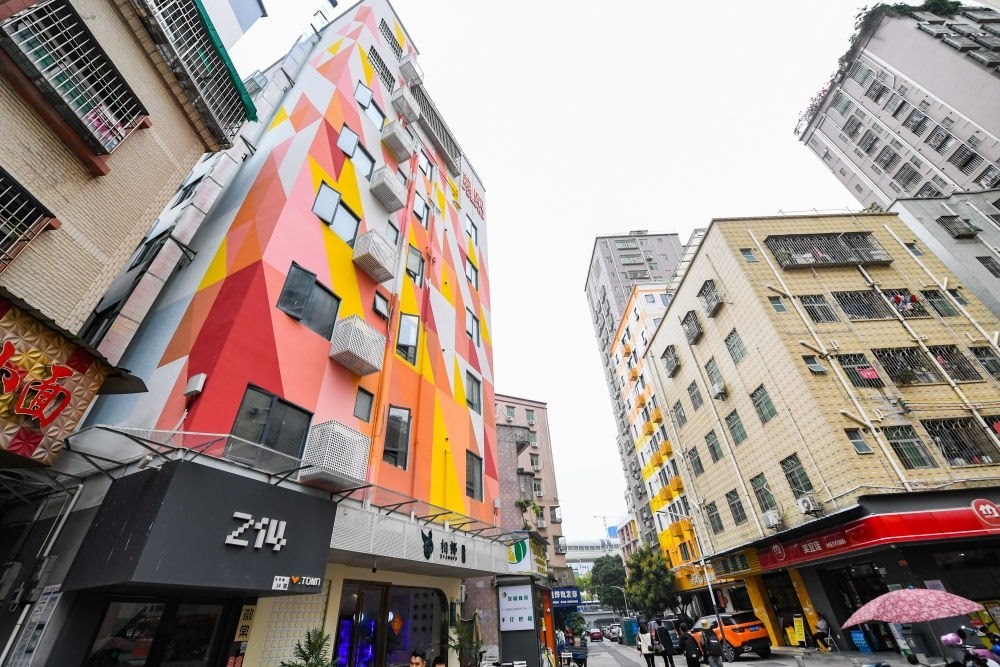 2023年4月2日在深圳市龍華區(qū)元芬村拍攝的改造后的青年公寓外立面(左)。近年來,深圳持續(xù)推進(jìn)城中村住房規(guī)模化品質(zhì)化改造提升,打造了元芬村等新型宜居人文社區(qū)。新華社記者 毛思倩 攝
