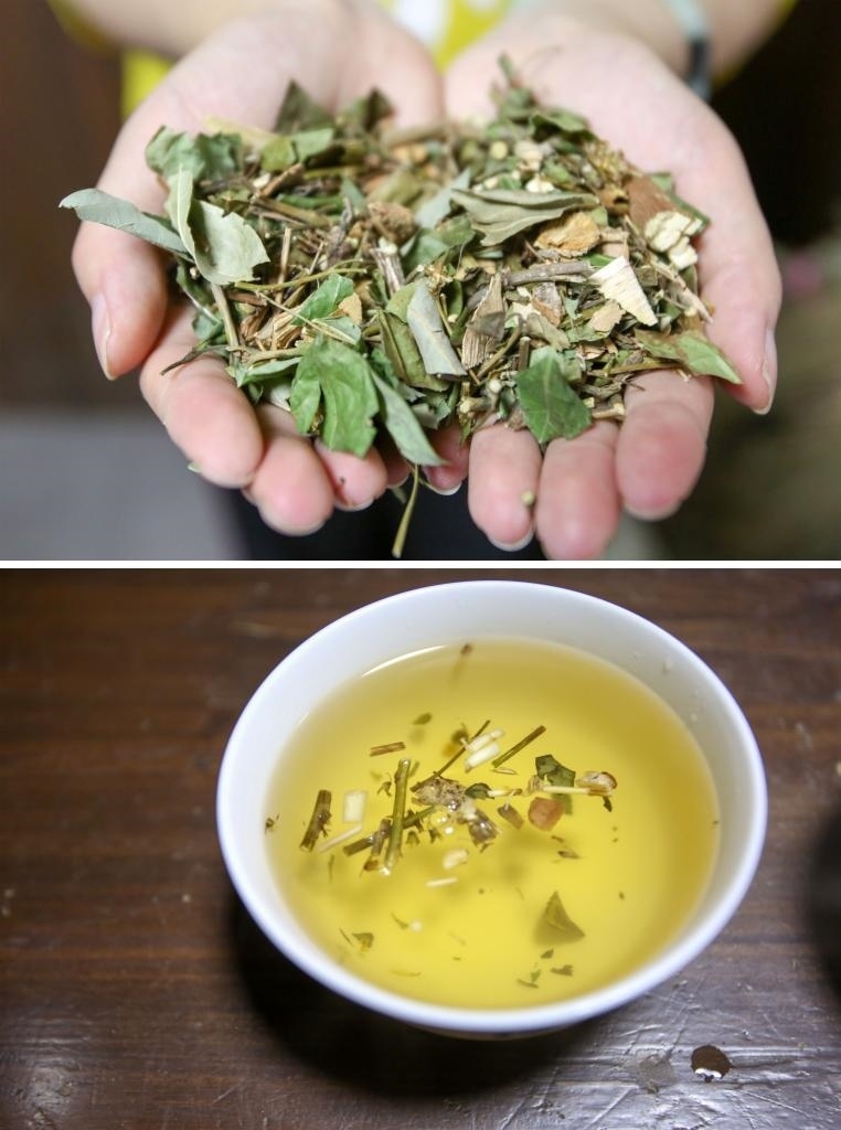 2017年5月25日在浙江松陽拍攝的端午茶。端午茶又稱“百草茶”,是浙江松陽獨具特色、歷史悠久的日常飲品,因端午節(jié)前后采選百草晾制而得名,如今是松陽一帶百姓家中常備飲品。據(jù)悉,端午茶無固定配方,全憑百姓結(jié)合自家口味、體征和經(jīng)驗制作。