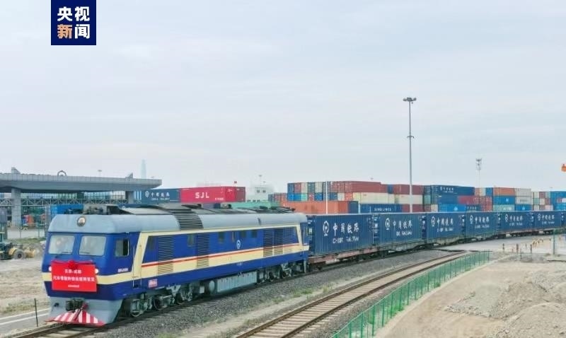 6月8日上午,一列滿載汽車零配件的集裝箱快運班列從中國鐵路北京局所屬天津集裝箱中心站駛出,開往成都城廂站。