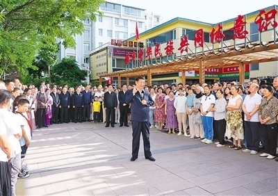 傍晚時(shí)分,社區(qū)廣場十分熱鬧,居民們看見總書記來了,紛紛圍攏過來,熱烈鼓掌歡迎。習(xí)近平親切地對大家說,時(shí)隔4年,我再次來寧夏看望各族干部群眾,見到大家非常高興!中華民族是一個(gè)大家庭,各族人民要像石榴籽一樣緊緊抱在一起。要不斷鑄牢中華民族共同體意識,把各族人民的心緊緊連在一起,把各方面的力量廣泛凝聚到一起,共同推進(jìn)中國式現(xiàn)代化,共襄中華民族偉大復(fù)興的盛舉。