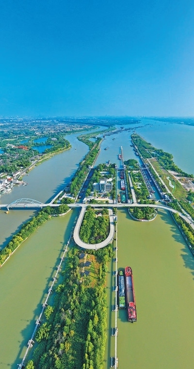 生態(tài)保護(hù)船只有序通過揚(yáng)州邵伯船閘。本報記者 雷 聲攝