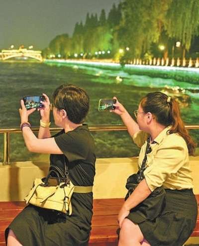 文旅融合乘船游覽的游客在拍攝大運(yùn)河揚(yáng)州段沿岸風(fēng)景。本報記者 雷 聲攝