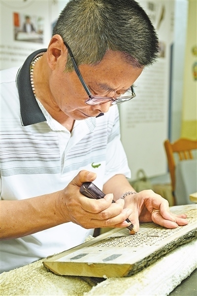 文化傳承揚(yáng)州雕版印刷技藝傳承人進(jìn)行雕版。本報記者 雷 聲攝