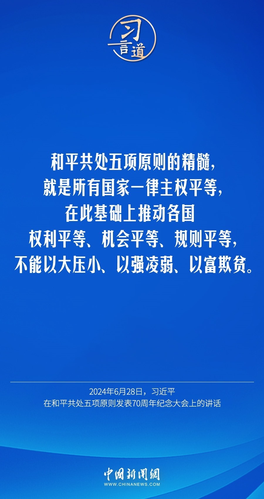 6月28日,國家主席習(xí)近平在北京人民大會堂出席和平共處五項(xiàng)原則發(fā)表70周年紀(jì)念大會并發(fā)表重要講話。習(xí)近平指出——