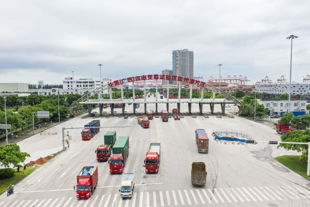 中國(廣西)自由貿(mào)易試驗區(qū)欽州港片區(qū)(2024年5月20日攝,無人機照片)。聚焦面向東盟、服務陸海新通道、沿邊開放三大特色,開展差異化探索和特色制度創(chuàng)新,讓中國(廣西)自由貿(mào)易試驗區(qū)成為我國面向東盟開放發(fā)展的前沿。