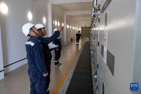 6月25日,在哈薩克斯坦阿拉木圖州謝列克風電場,中哈運行人員進行設(shè)備巡檢。白雪騏 攝