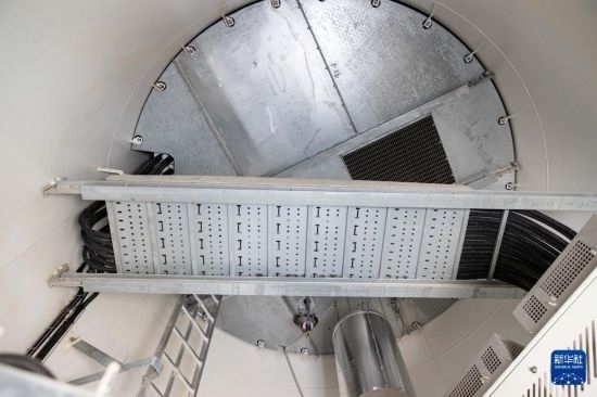 這是6月25日在哈薩克斯坦阿拉木圖州謝列克風電場拍攝的風機第一級平臺。白雪騏 攝