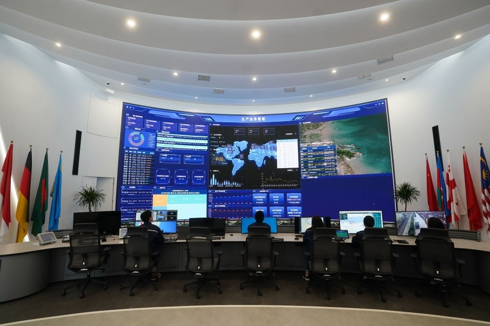 基地數(shù)字化調(diào)度中心電子屏幕上,從連云港發(fā)出和抵達(dá)連云港的中歐(中亞)班列目的地、貨源地及貨物信息一目了然,中哈邊境地區(qū)貨物運(yùn)輸?shù)膶崟r畫面動態(tài)更新。