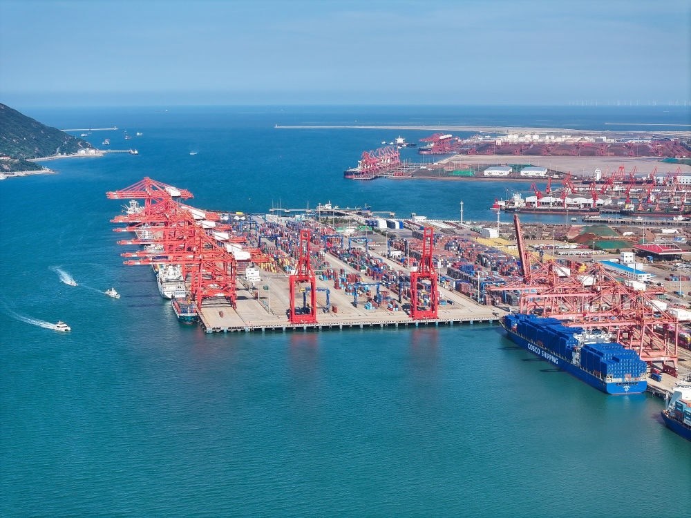 貨輪停靠在連云港港集裝箱碼頭(2024年6月26日攝,無人機(jī)照片)。
