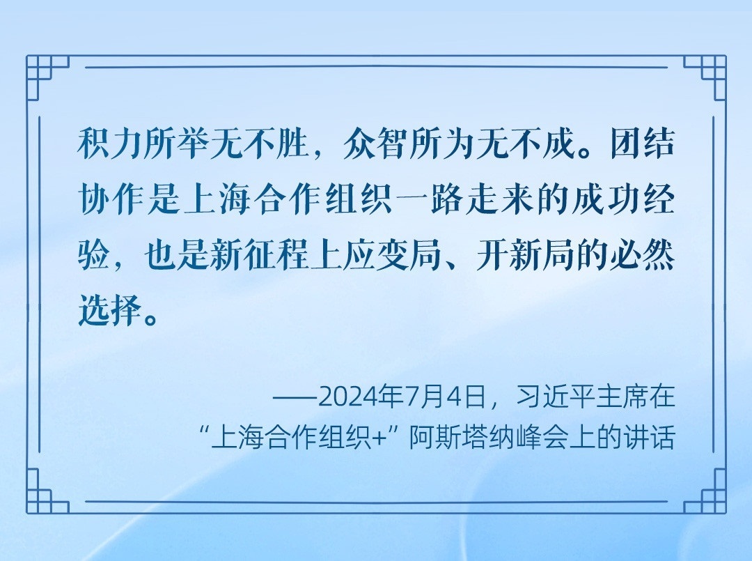 2024年至2025年,中國將接任上海合作組織輪值主席國。從聚焦地區(qū)安全拓展到推動國家政治互信、合作發(fā)展,從建設(shè)惠及各國的基礎(chǔ)工程到促進(jìn)互利包容的經(jīng)濟(jì)全球化,中國將繼續(xù)為這條光明的“上合之路”貢獻(xiàn)力量和智慧。