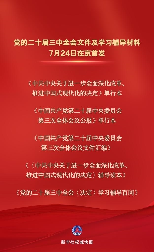 黨的二十屆三中全會文件及學習輔導材料7月24日在京首發(fā)