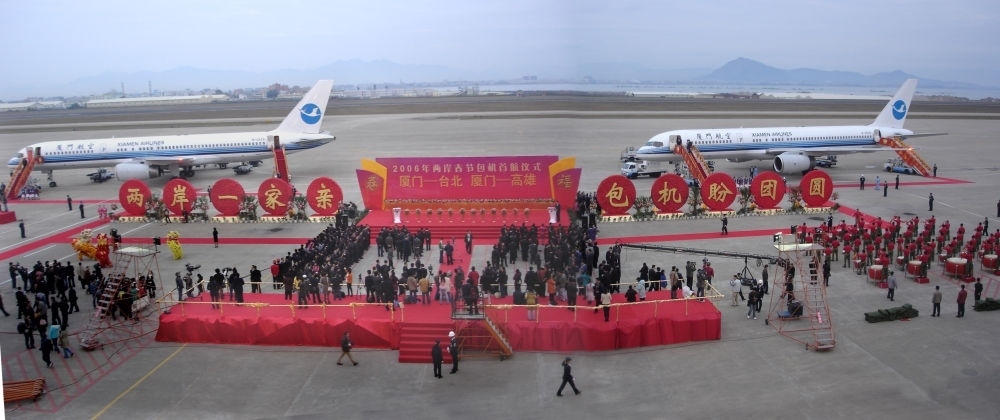 2006年,廈航作為新增廈門航點(diǎn)的唯一運(yùn)營航空公司,執(zhí)行了廈門-臺(tái)北、廈門-高雄航線的包機(jī)任務(wù)。這是首航儀式現(xiàn)場。
