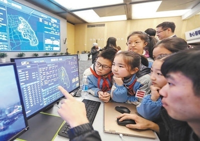 城市治理市民在浦東新區(qū)城市運行綜合管理中心參觀。黃日閱攝(人民視覺)