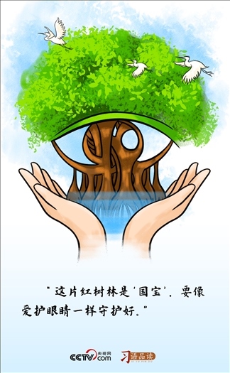 “國寶”一詞強調(diào)了紅樹林不可估量的價值,及其在國家發(fā)展中的重要地位。“像愛護眼睛一樣守護好”,則重申了保護紅樹林的緊迫性和重要性。