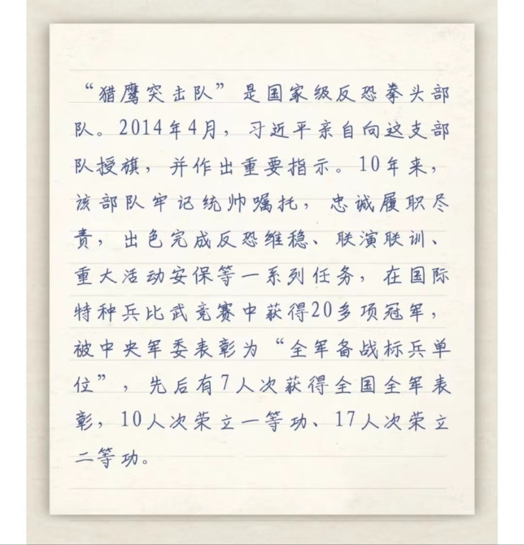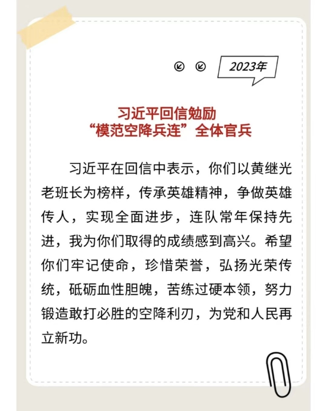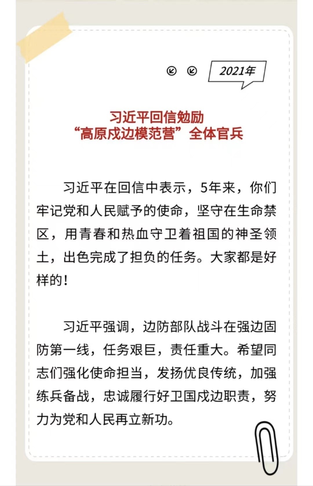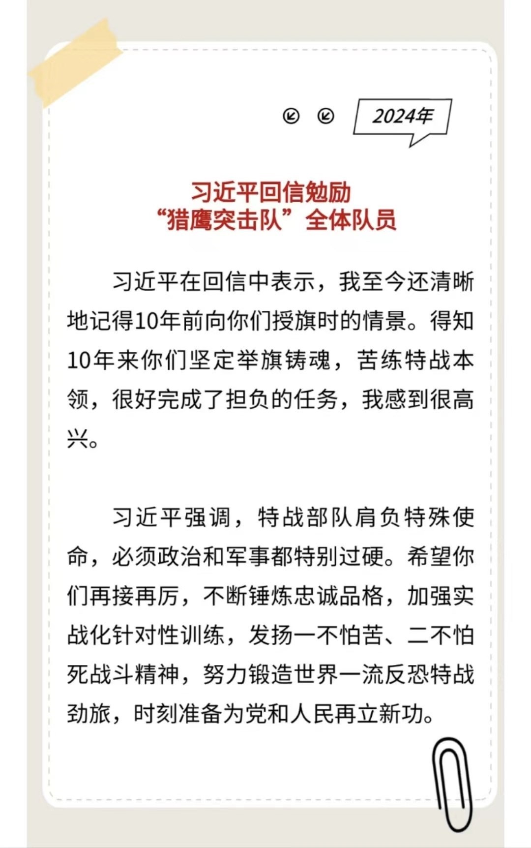 習(xí)主席給“強(qiáng)軍精武紅四連”全體官兵回信