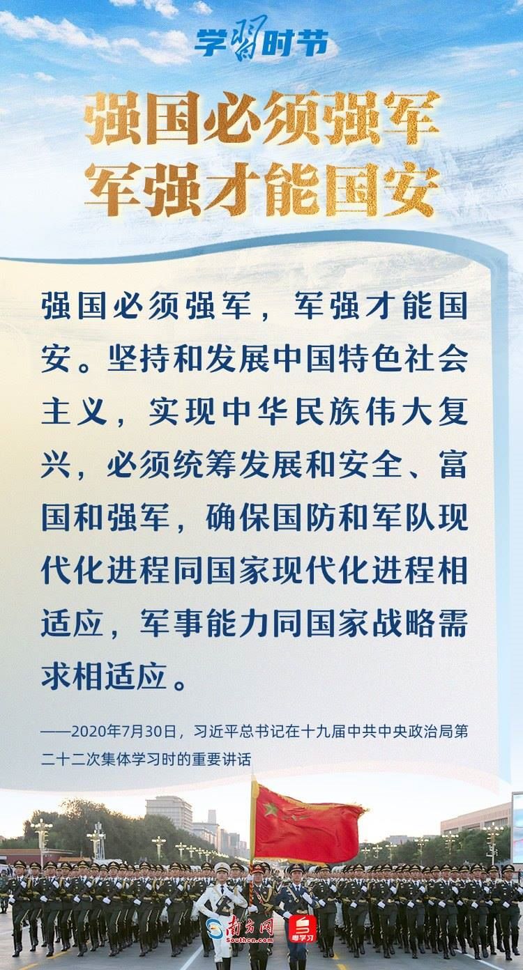 強國必須強軍,軍強才能國安。黨的十八大以來,以習近平同志為核心的黨中央領(lǐng)導軍隊和國防建設(shè),開啟強軍興軍新征程,形成了習近平強軍思想,指引人民軍隊朝著實現(xiàn)新時代強軍目標、全面建成世界一流軍隊奮勇前行。在八一建軍節(jié)到來之際,讓我們一起回顧總書記那些振奮人心的強軍話語。