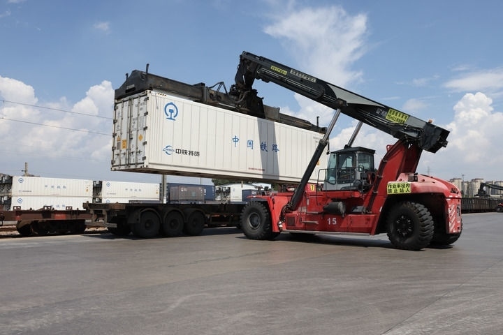 工作人員在中鐵聯(lián)集昆明中心站進行裝卸車作業(yè)(2024年8月2日攝)。新華社記者 呂帥 攝