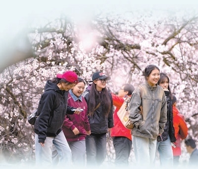 桃花盛開(kāi)游客來(lái)