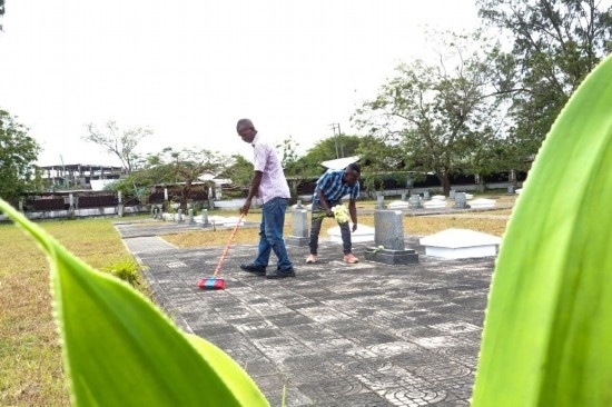 在坦桑尼亞港口城市達(dá)累斯薩拉姆西郊,有一處靜謐墓園。一樹樹盛放的潔白花朵下,一排排花崗巖墓碑整潔肅穆。