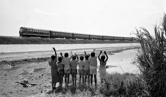 贊比亞魯西瓦西湖畔的少年兒童歡迎坦贊鐵路的列車通到他們的家鄉(xiāng)(1976年攝)。
