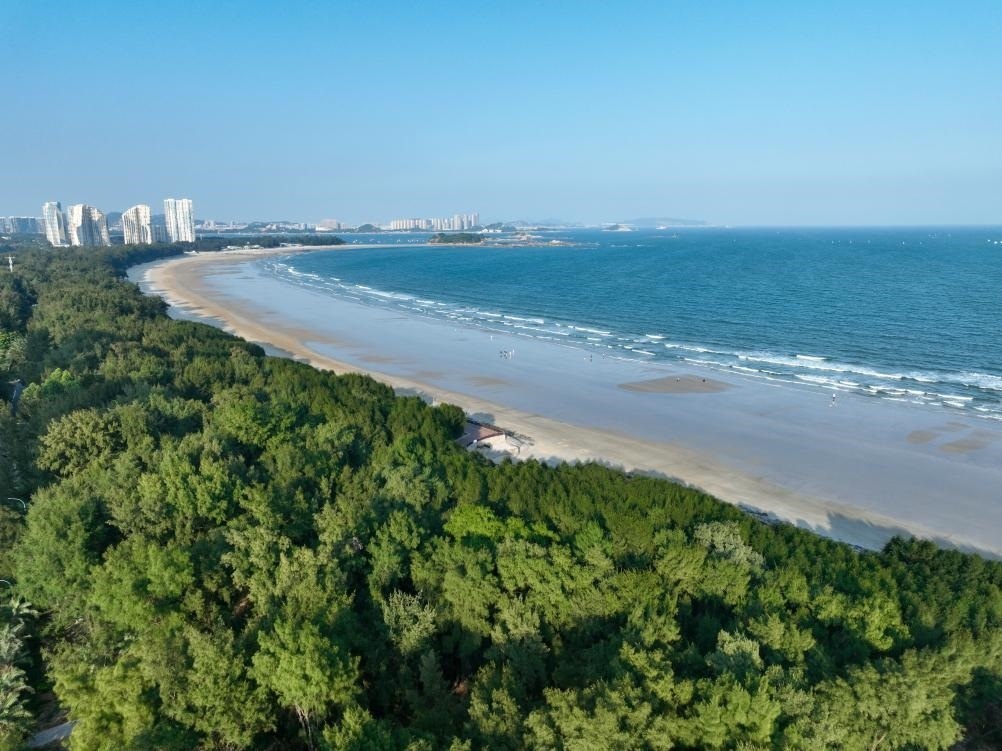 郁郁蔥蔥的東山縣沿海防護(hù)林(無(wú)人機(jī)拍攝)。新華社記者 姜克紅 攝