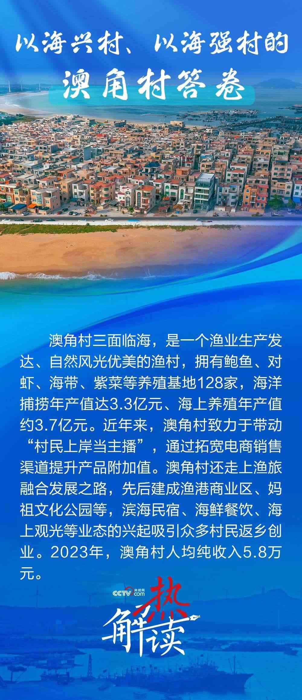 澳角村三面臨海,近年來走出了一條以海興村、以海強(qiáng)村的新路子??吹洁l(xiāng)村發(fā)生了巨變,總書記直言“鄉(xiāng)村振興還是要發(fā)揚(yáng)優(yōu)勢”,并勉勵(lì)澳角村做好“?!钡奈恼?,在鄉(xiāng)村振興、共同富裕的道路上一往無前。